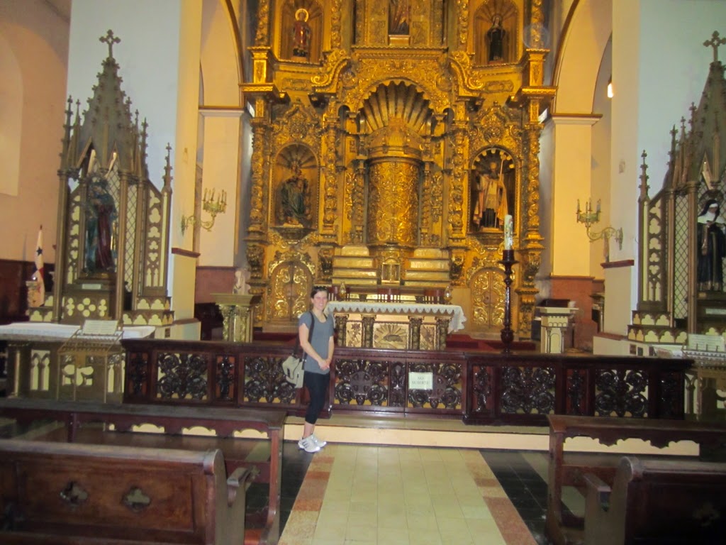My Auntie Darlene and I took a tour of the Casco Vierjo, or Old Town Panama City. Our tour guide, Gloria, was a fiesty little lady with immense knowledge of the city. Our tour started at 9:00 in the morning and didn't end until 1:00 in the afternoon. Needless to say we got the whole tour and I did learn quite a bit about the city and it's history. The Casco has many monasteries and churches that had quite spectacular architecture, the grandest being the Golden Altar of the Church of San Jose. I won't delve into too many of the details (don't want to spoil it for those of you who may want to do this tour for yourself), but I will say it lived up to all the hype Gloria gave it. I have never seen anything like that before and I was throughly entertained the entire tour. I even got the opportunity to see the current President of Panama (it's election year in Panama so by the time I publish this he will no longer be in office), which is something I can't say many people have been able to do. I haven't seen my own Prime Minister and yet I've seen a foreign leader. We were sitting across the street from the Presidential Palace, when Gloria said "Just wait, he will be here in 5 minutes". Low and behold, there was an honorary guard stationed, and then came police motorcycles, followed by his SUV. Quite special.